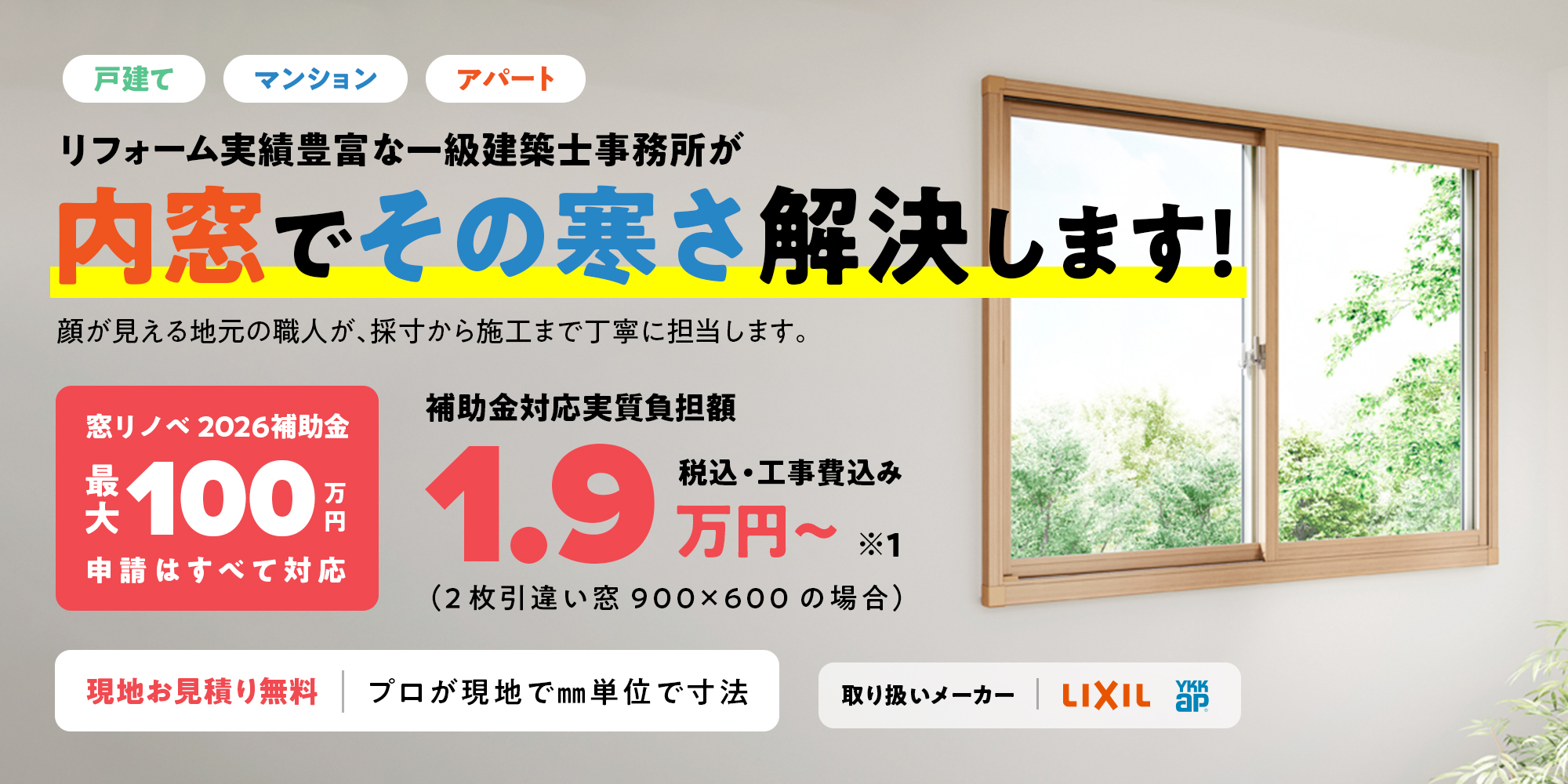大好評だった内窓リフォームの補助金キャンペーンが、2026年も継続されることが決定しました! その名も「先進的窓リノベ2026事業」です。