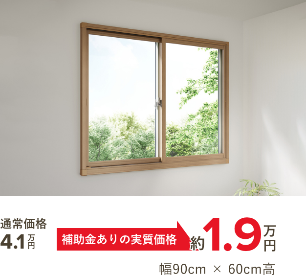 ※表示価格は、製品代・標準取付工事費・消費税を含む総額から、国の補助金(先進的窓リノベ事業等)の最大見込み額を差し引いた「お客様の実質負担額」の目安です。窓のサイズ、既存のレール状況、窓枠の奥行き(ふかし枠の要否)により、別途部材費が発生する場合があります。正確な金額は、無料の現地調査にて算出・確定いたします。